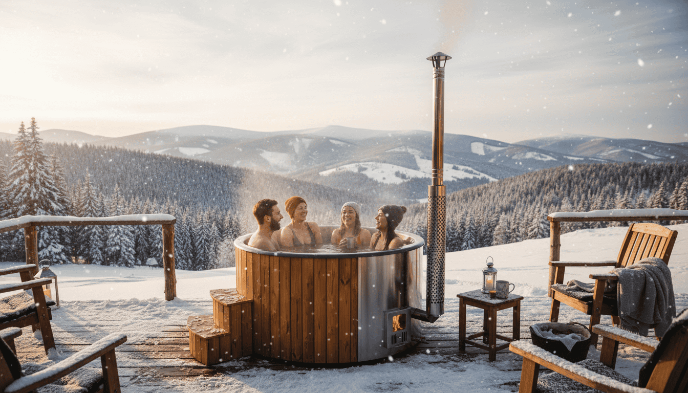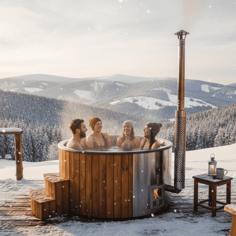 Naše koupací sudy jsou vhodné pro celoroční provoz. Prodlužte si koupací sezónu v soukromí. Po práci se sklenkou vínka můžete i doma zažít romantickou atmosféru.