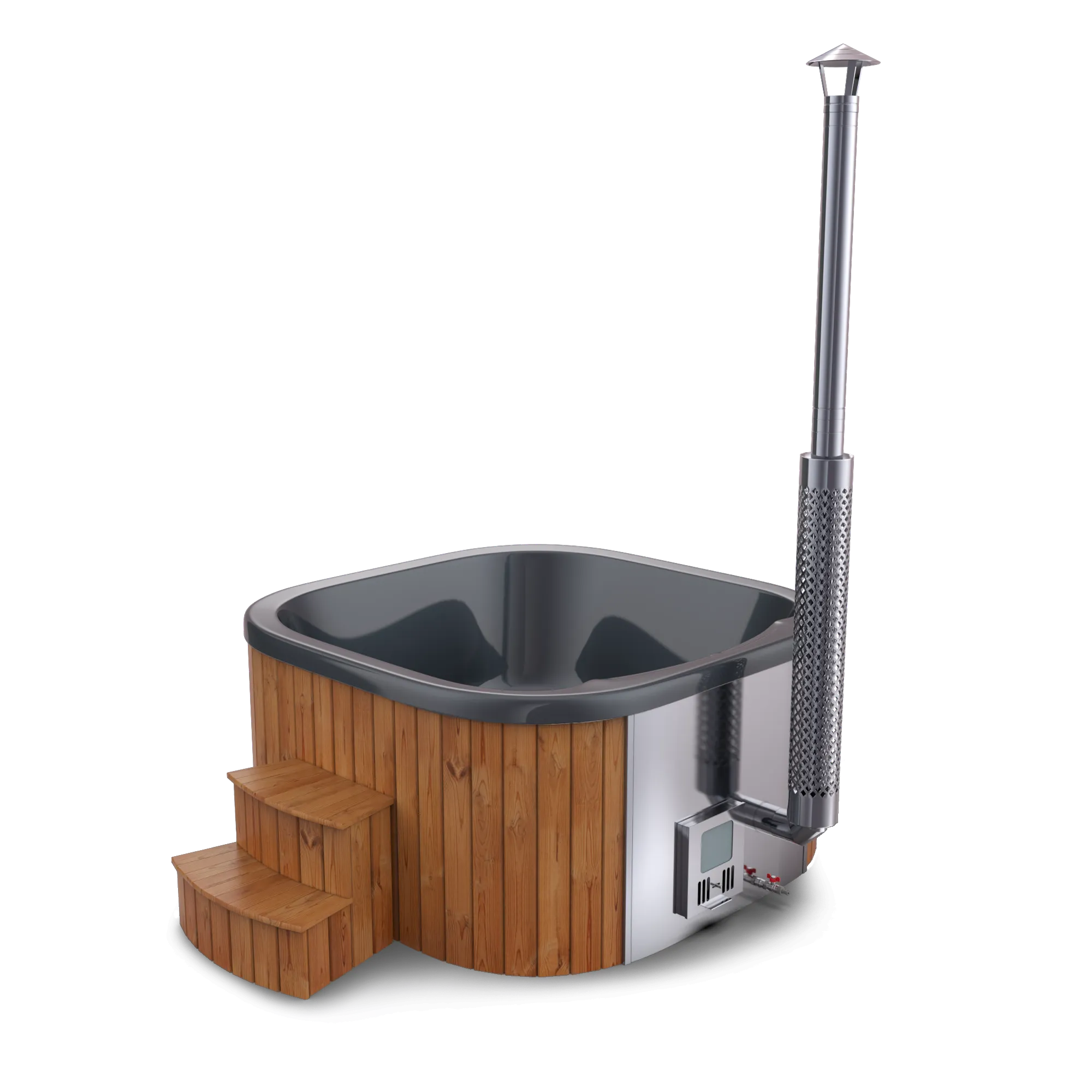 Elegantní luxusní koupací sud hranatého tvaru. Díky tomu se jedná o velmi moderní, prostorný a pohodlný sud. Akrylátová vložka je zcela inovační novinka, která svou pevností dosahuje až trojnásobně vyšších hodnot oproti sklolaminátu. Integrované kamna zajistí dokonalou bezpečnost, rychlý ohřev vody a úsporu prostoru.
