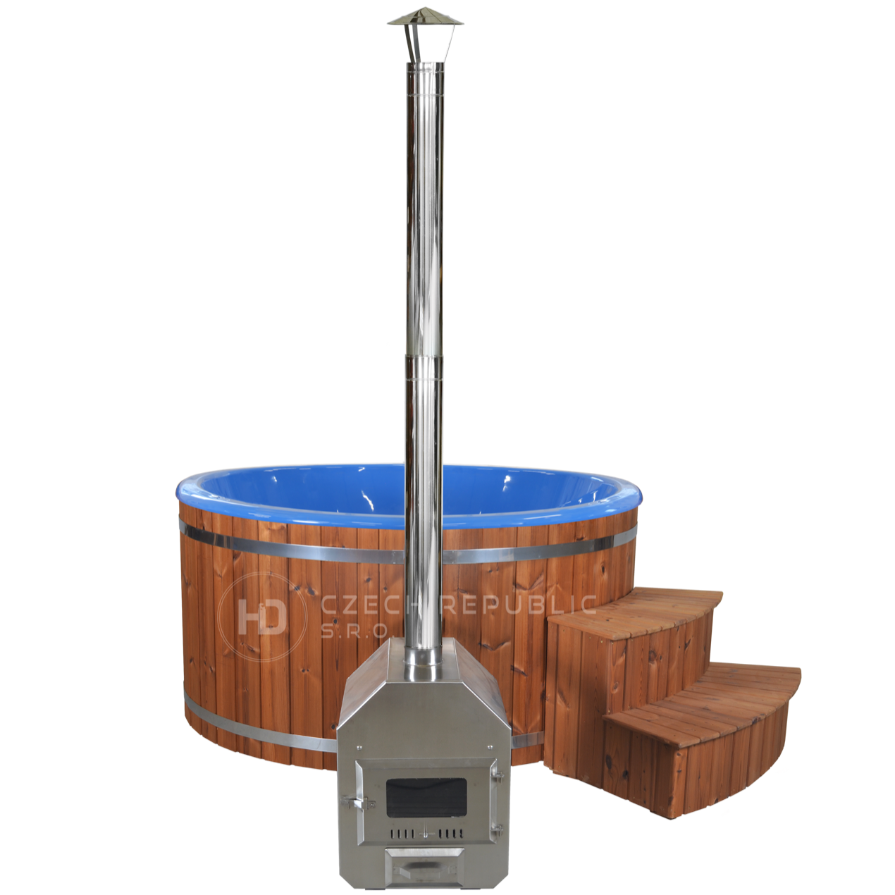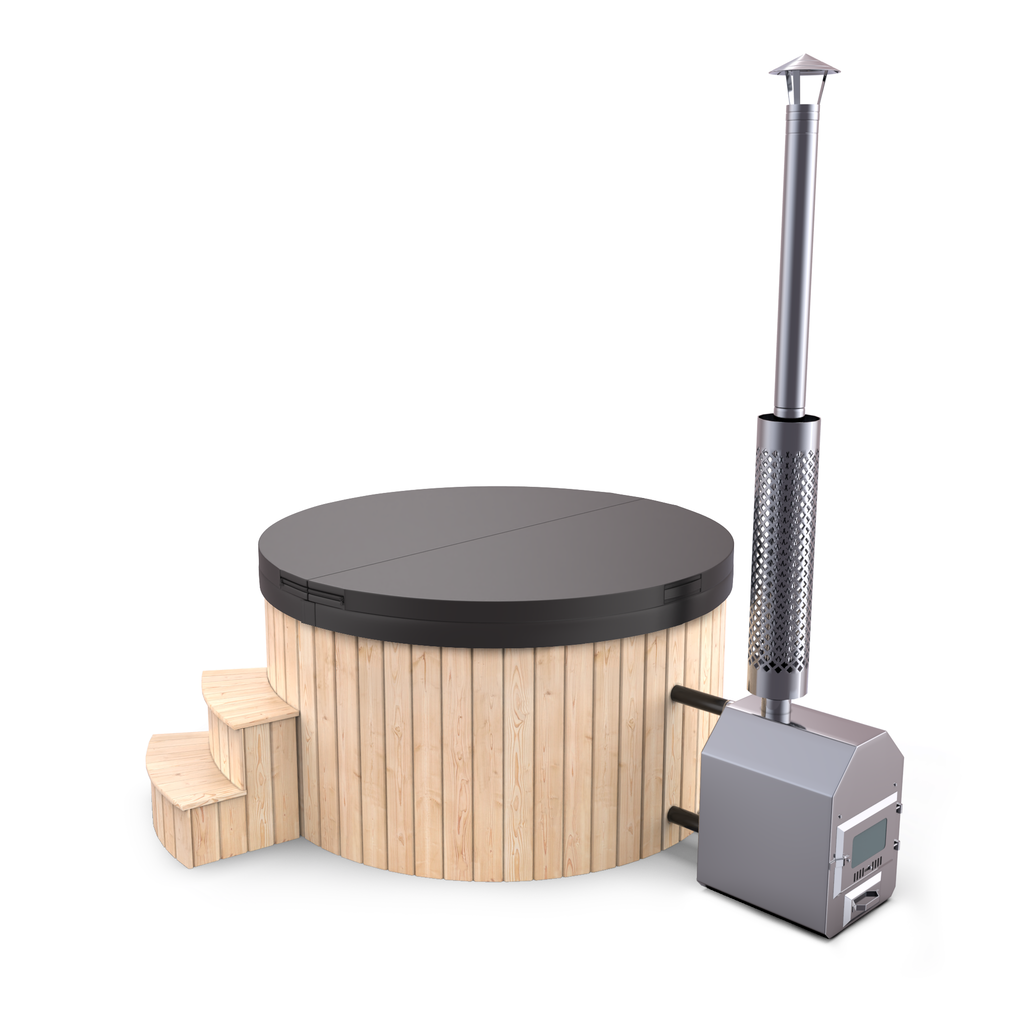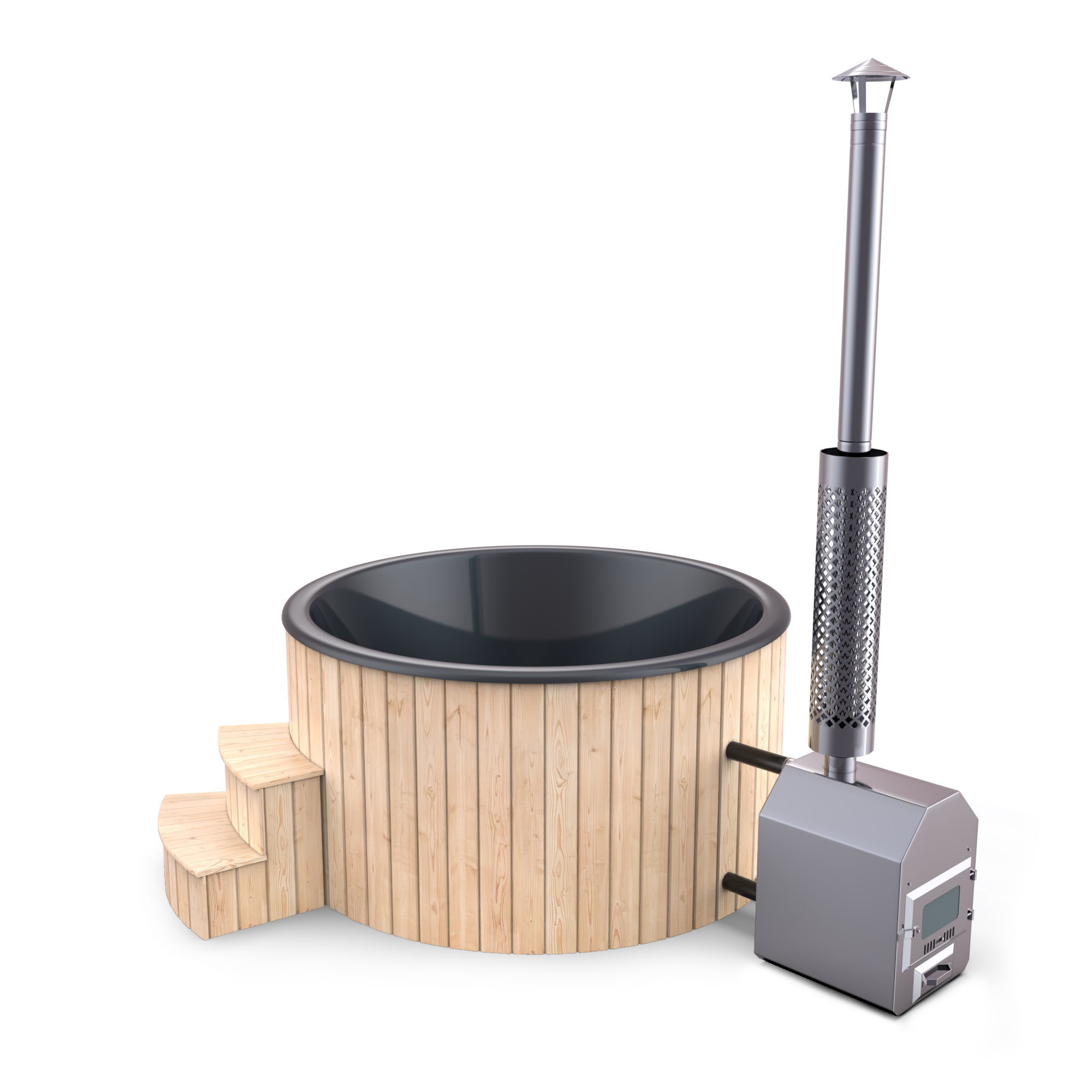 📦 STANDARDNÍ OBSAH BALENÍ zahrnuje vše potřebné pro váš koupací ráj: dřevěný kryt, externí kamna z nerezové oceli, nerezový komín, standardní schůdky, vodní míchadlo a mnoho dalšího.