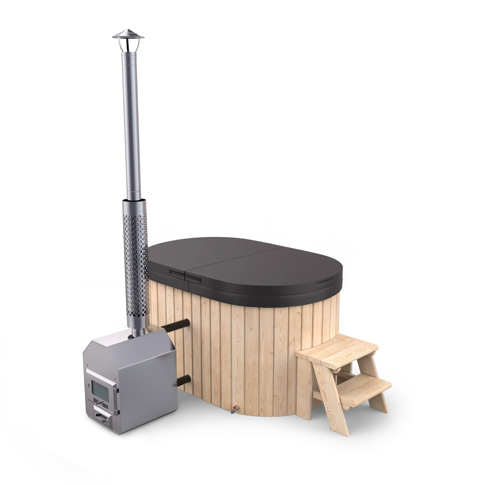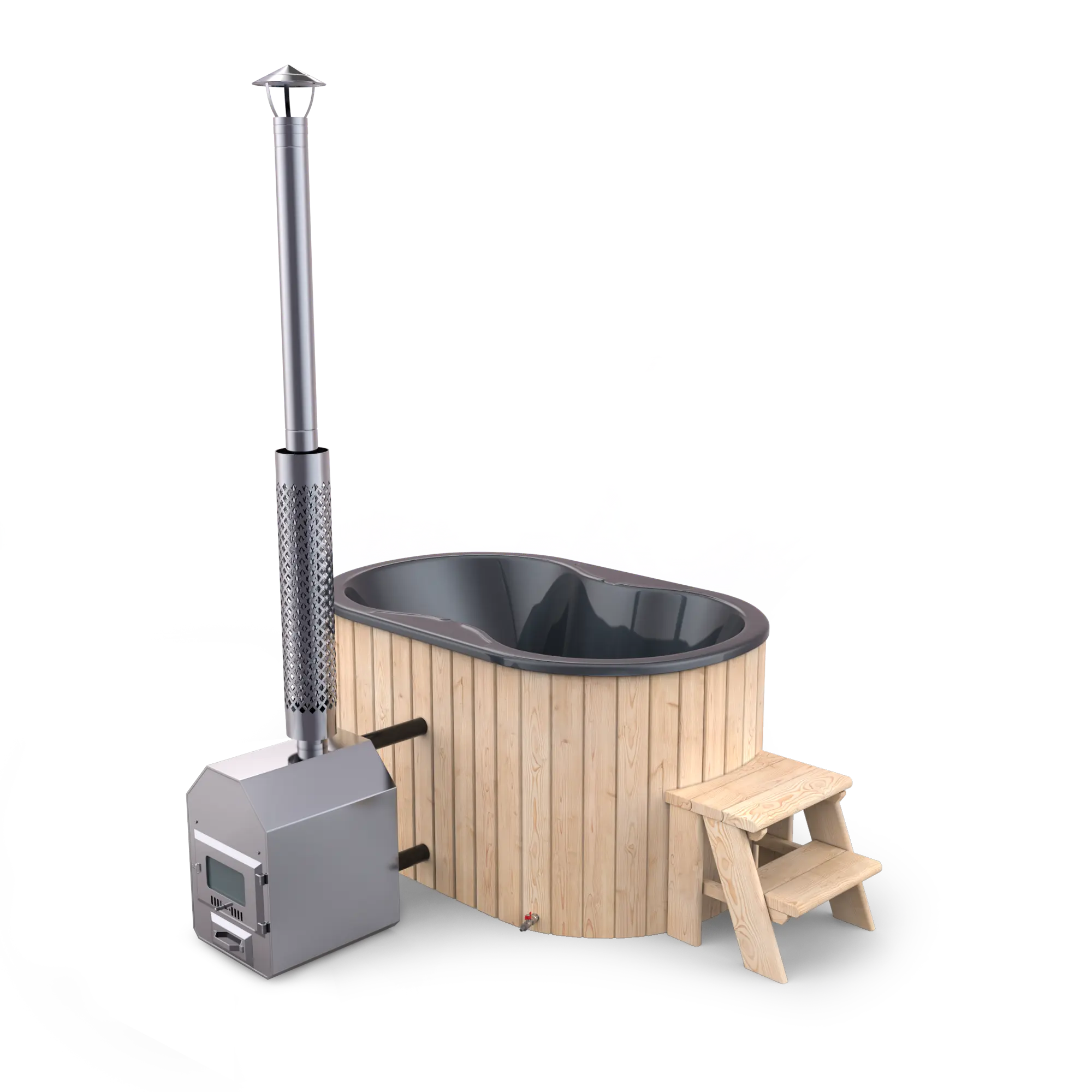🔥 Bezpečné a čisté vytápění: Kamna umístěná mimo vanu eliminují riziko popálení a zároveň zabraňují znečištění vody, což je běžný problém u vnitřních kamen.